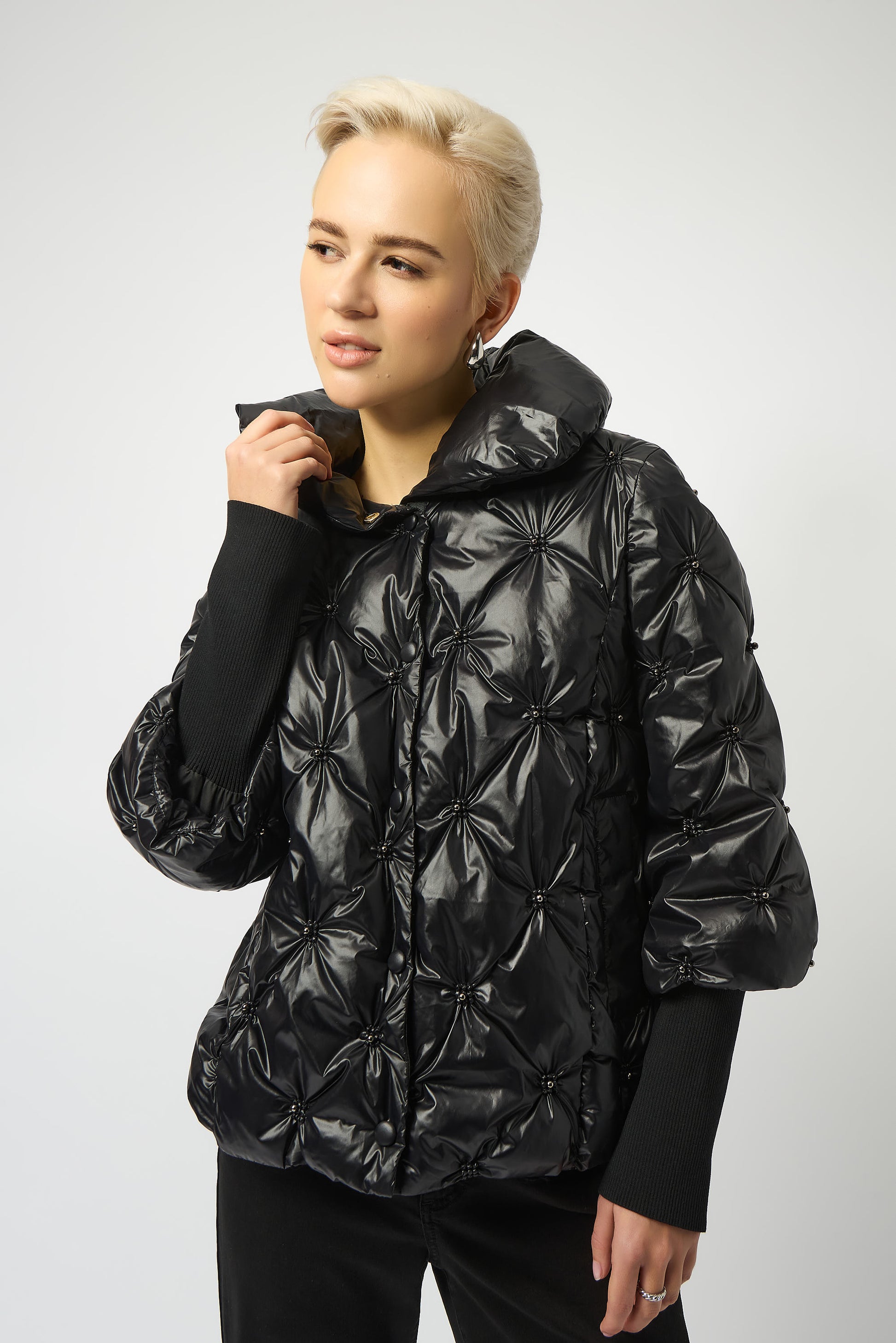 Chaqueta acolchada con perlas negro 253931