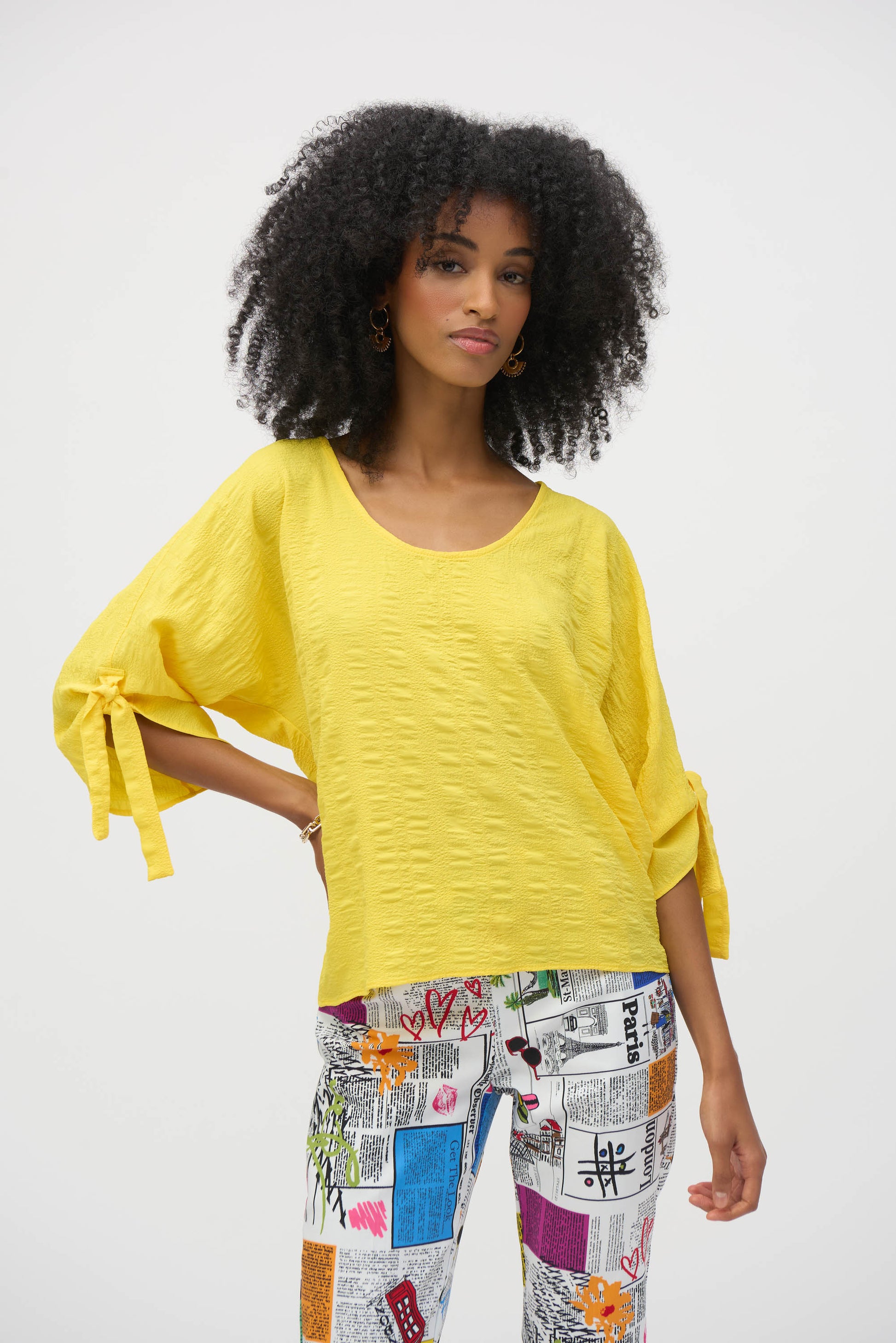 Combínese un look refinado para cualquier evento con este top tejido. Esta pieza está confeccionada en una silueta boxy y presenta una textura de gofre única que derrocha un estilo atrevido. El escote redondo y las mangas dolmán de tres cuartos con lengüetas aportan un toque clásico y encantador a la prenda.