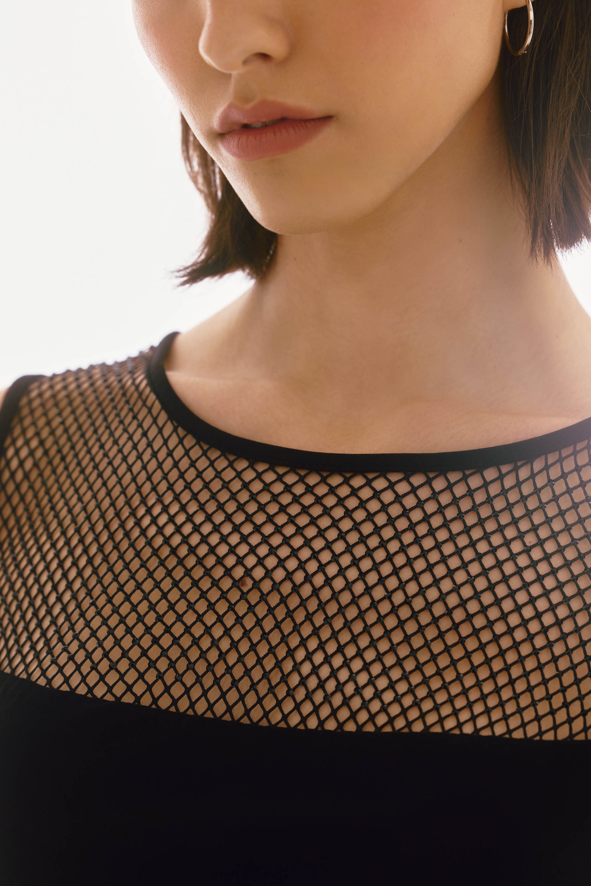 Este mono culotte de punto sedoso tiene un factor sorpresa difícil de olvidar. Diseñada con un canesú transparente adornado con pequeños cristales en el corpiño y un detalle cruzado fluido en la parte inferior de la pierna, esta refinada prenda irradia estilo y elegancia. Parte de la colección Signature.