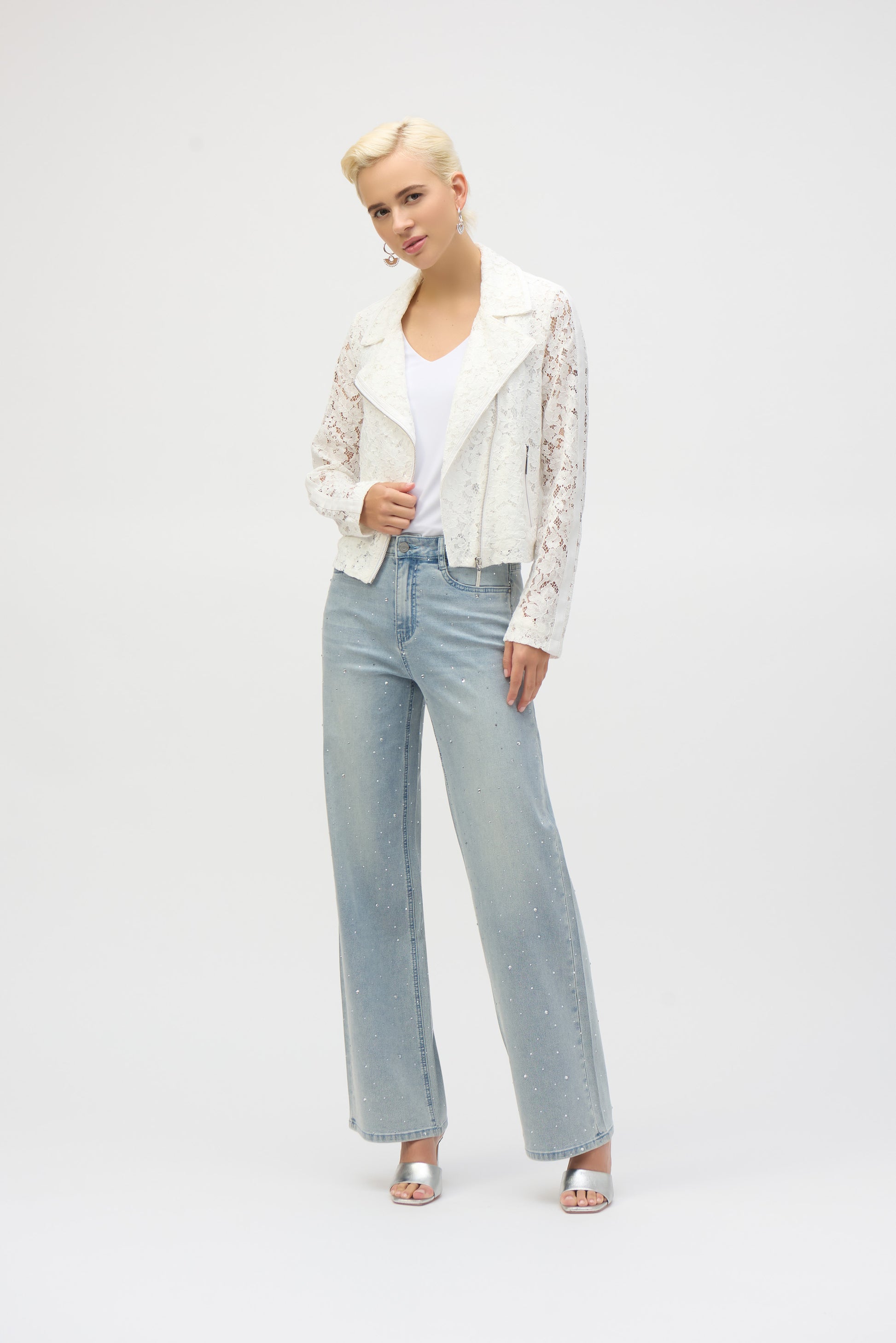 Chaqueta moto con encaje vainilla 252920