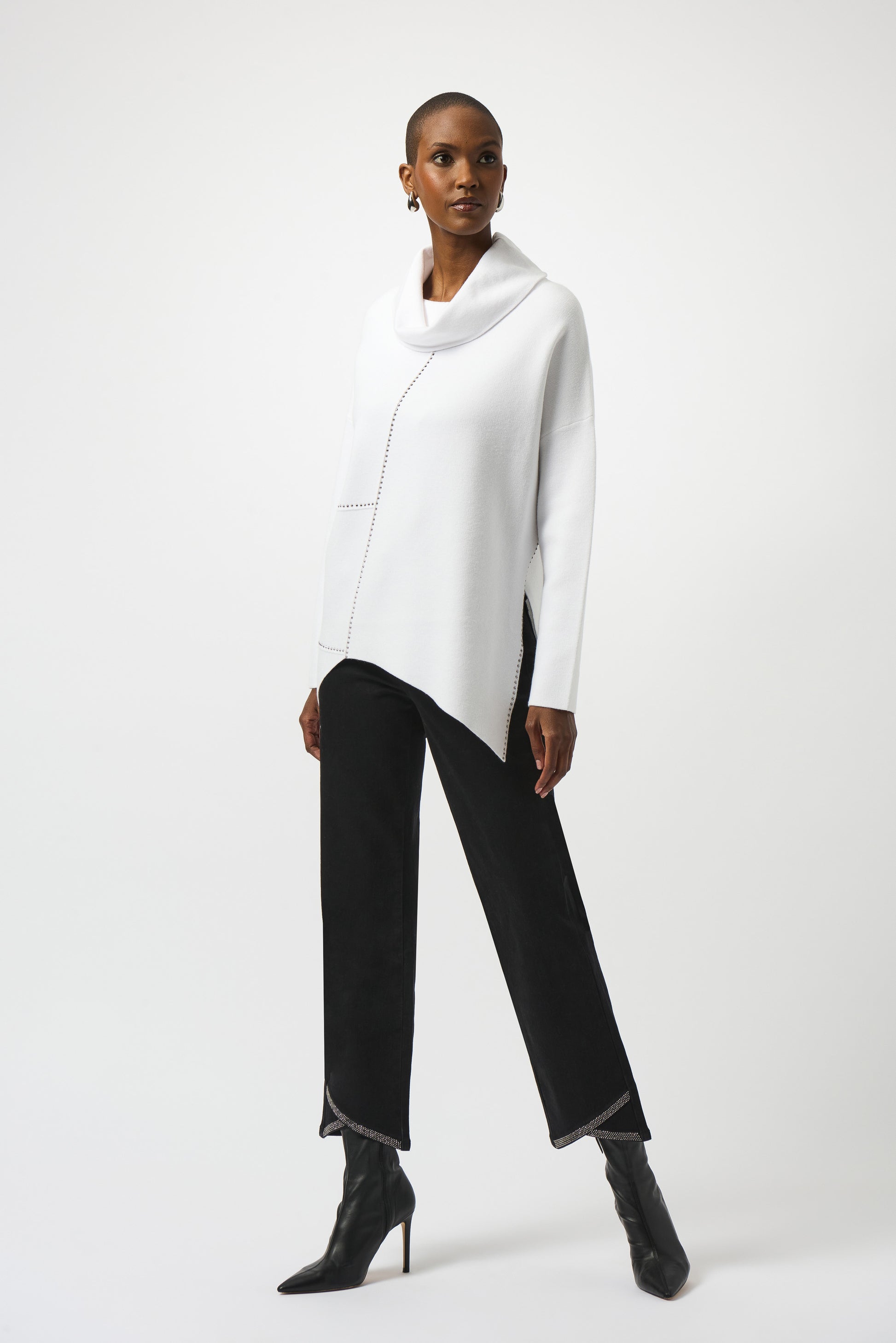 Este jersey de punto combina a la perfección comodidad y estilo para hacer que los meses más fríos sean más agradables. El diseño asimétrico le añade un toque sofisticado, mientras que el escote fluido ofrece calidez y elegancia. Los detalles de planchado cuidadosamente colocados mejoran aún más el look, añadiendo un toque delicado y hermoso.
