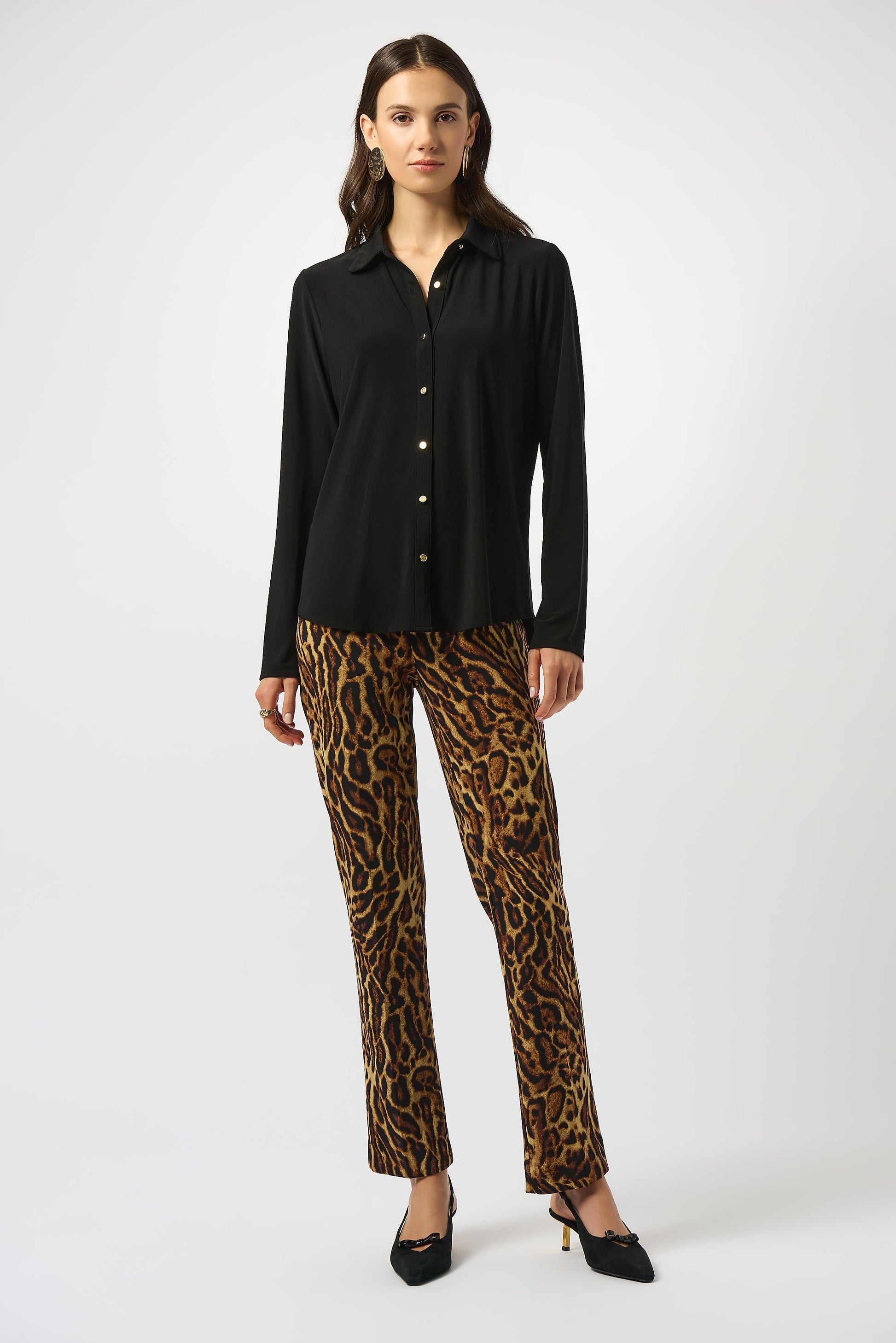 Esta blusa de un suave tejido de punto de seda sin duda será una adición muy chic a su ropa de diario, pues combina un estilo atemporal con una versatilidad sin esfuerzo. Con un clásico cuello de camisa, unas mangas largas rectas y un diseño abotonado pulido, es la pieza perfecta para hacer mil combinaciones con sus prendas básicas favoritas.