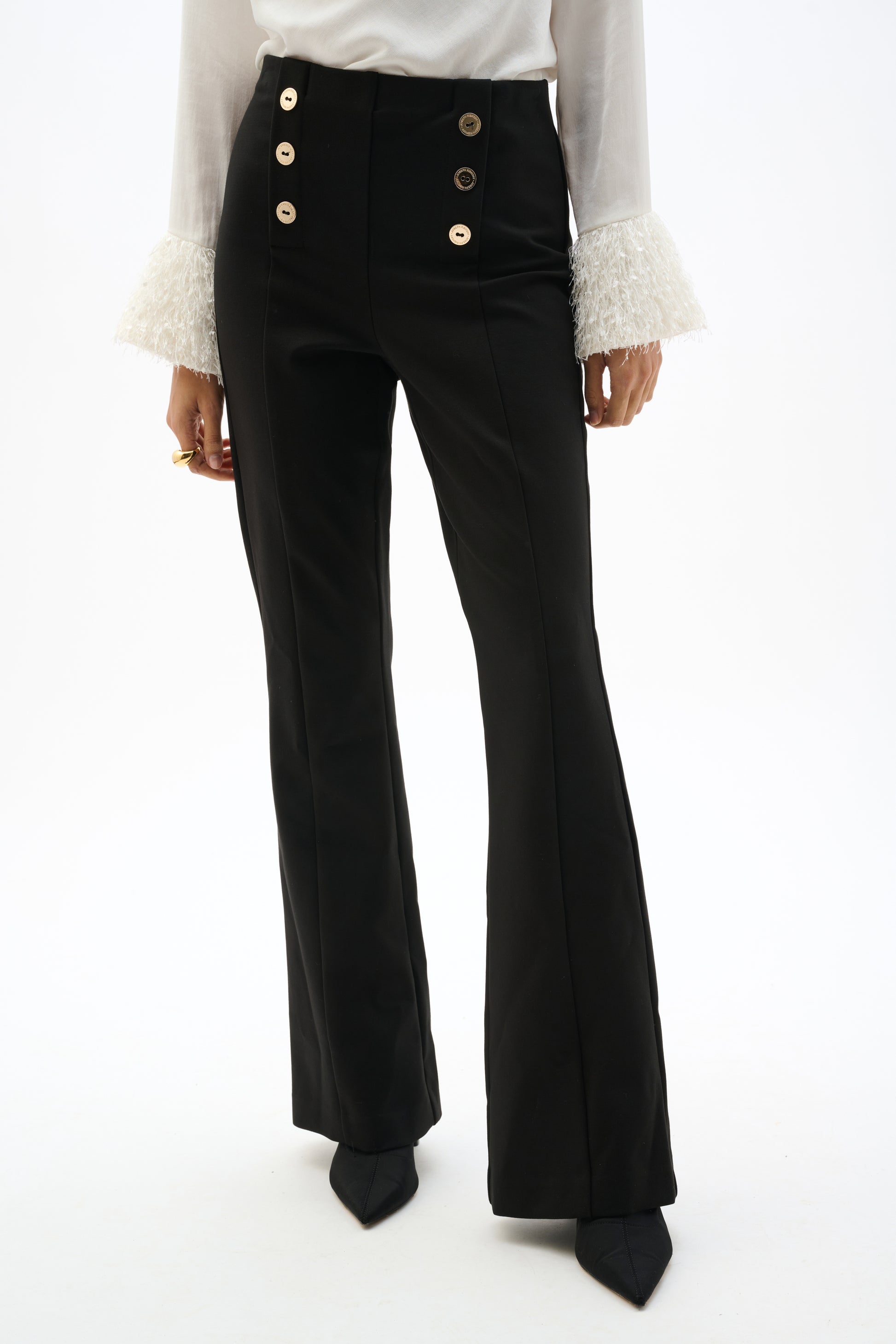 Pantalón acampanado sin cierres en punto grueso negro 254120