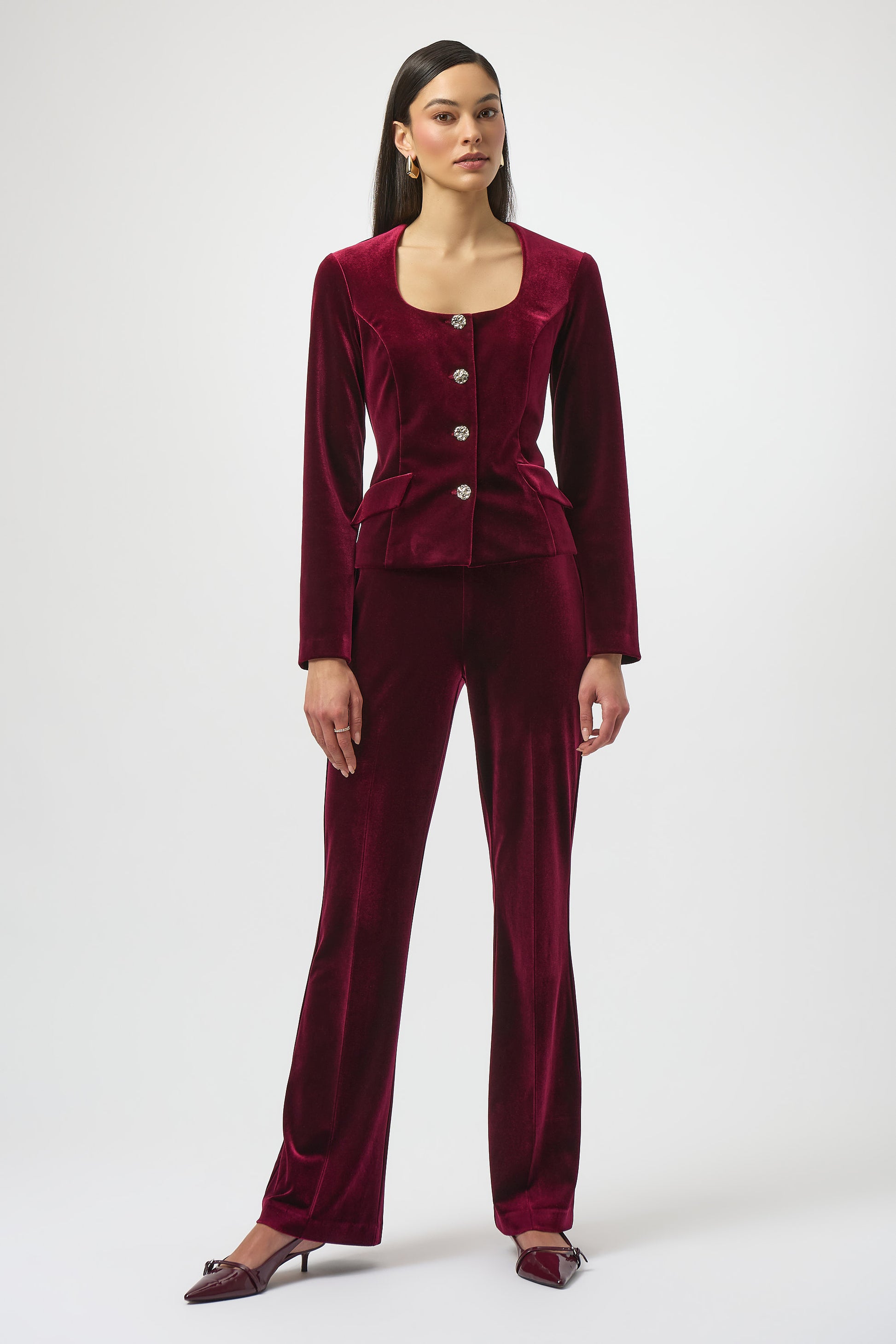 Pantalón sin cierres acampanados de terciopelo rojo burdeos 254195