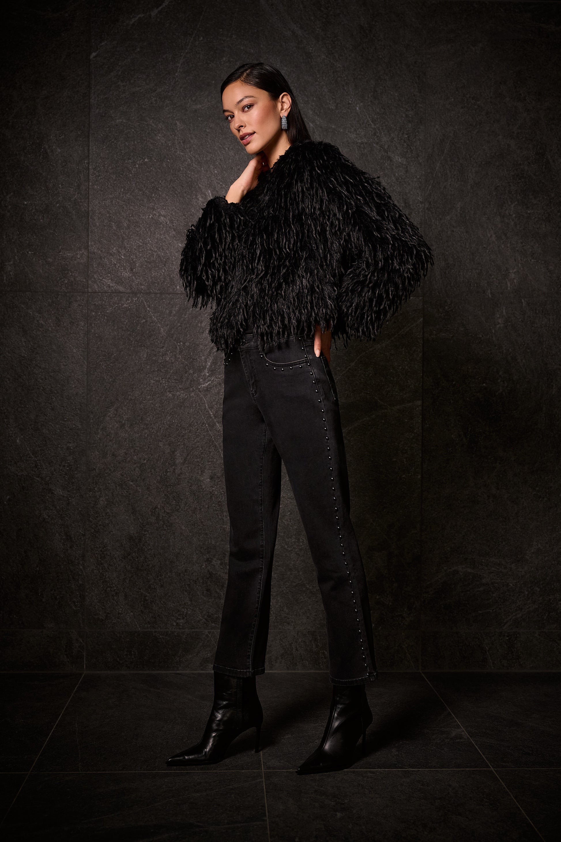 Jeans clásicos de pierna recta con tachuelas gris carbón 254916