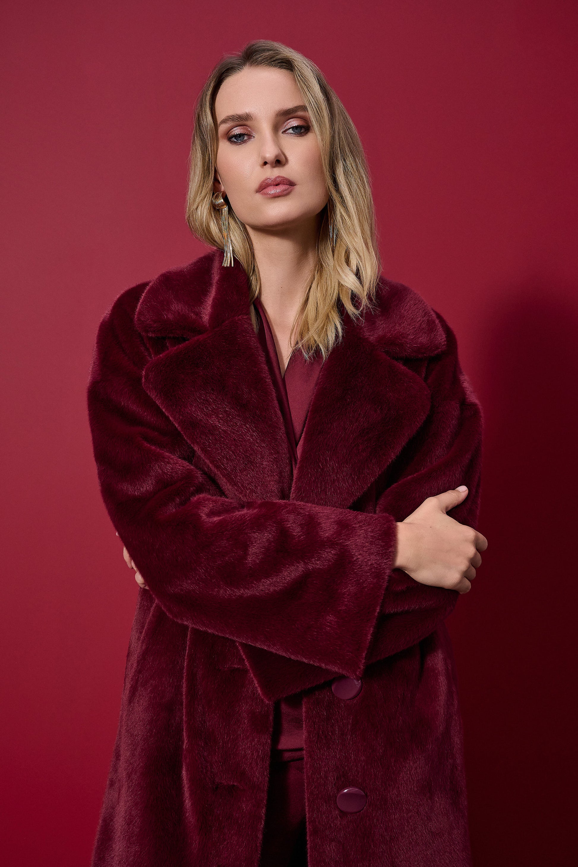 Con un hilo de plumas lujosamente suave y adornos de piel sintética en el cuello y los puños, este elegante abrigo tipo jersey es todo lo que desea que sea: calentito, elegante y versátil.
