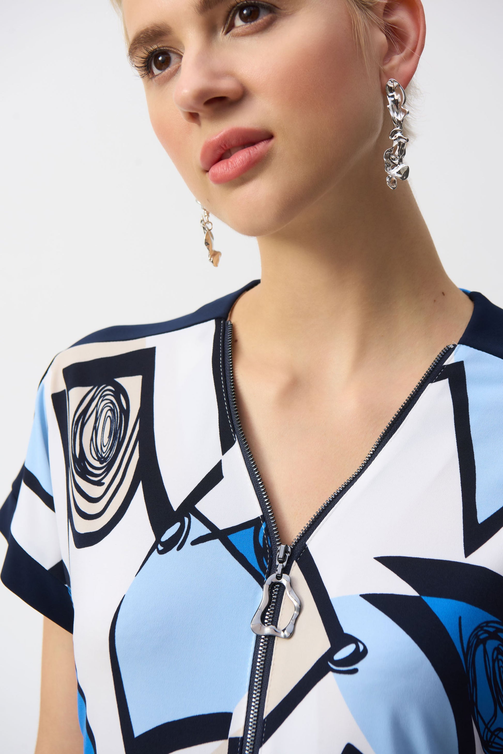 Blusa estampada con figuras geométricas en manga corta. Composición 95% Poliéster 5% Spandex