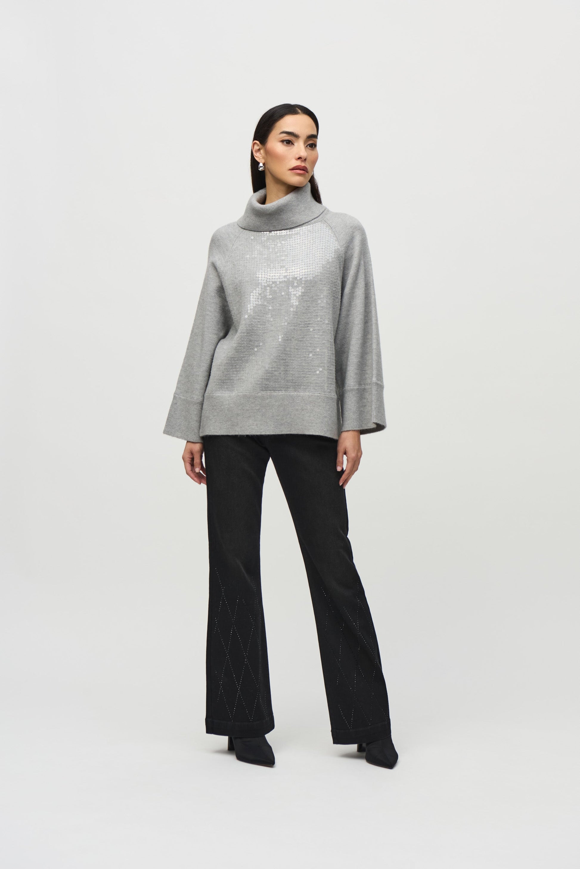 Mantente elegante y acogedora con este jersey de moda con un corte relajado y un diseño hasta la cadera. Adornado con lentejuelas, presenta un elegante cuello alto y mangas largas raglán, perfecto para ocasiones informales.