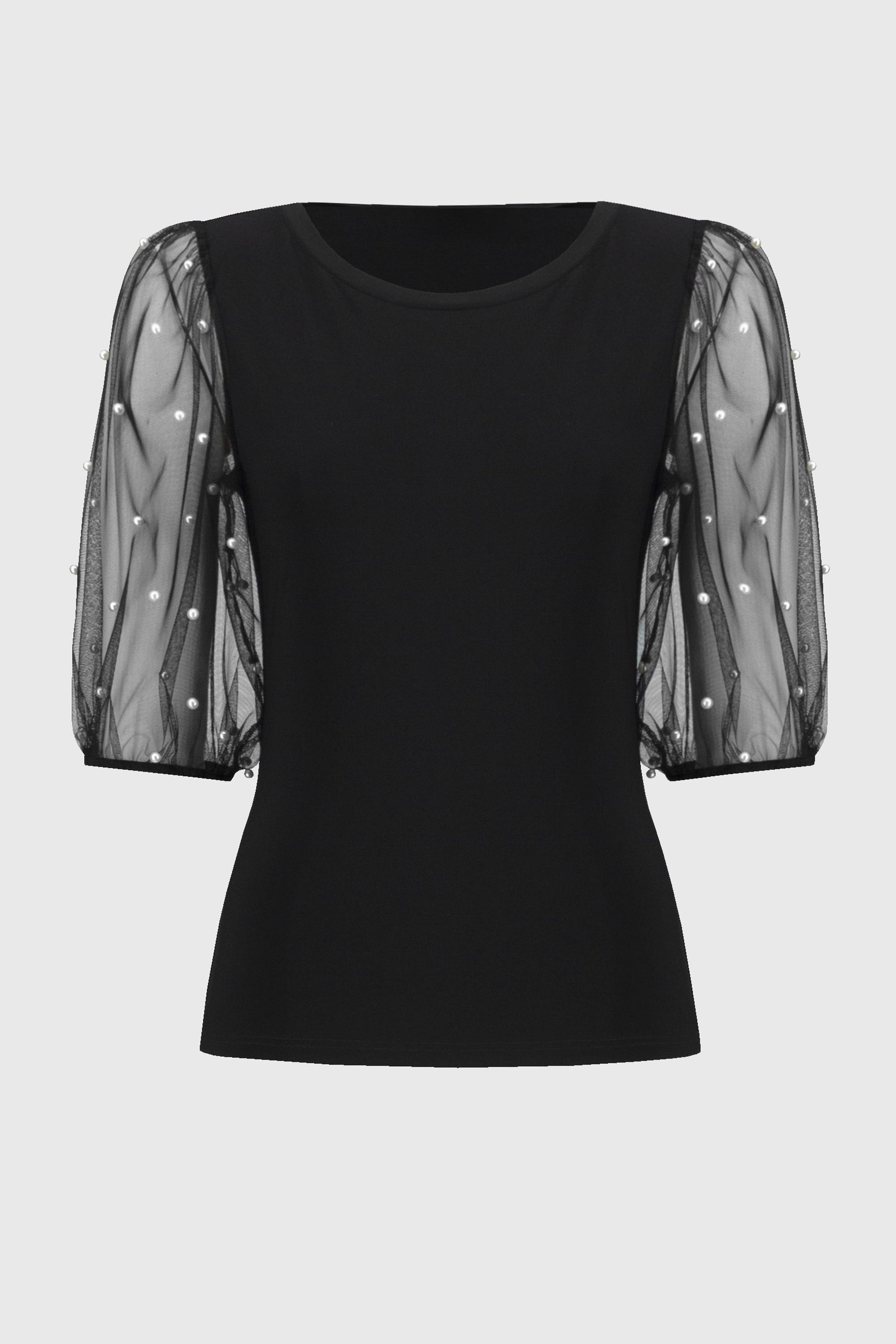 Corte regular hasta la cadera presenta cuello redondo y mangas 3/4 con un elegante diseño de mangas abullonadas. Adornado con elegantes abalorios para darle un toque de sofisticación.
