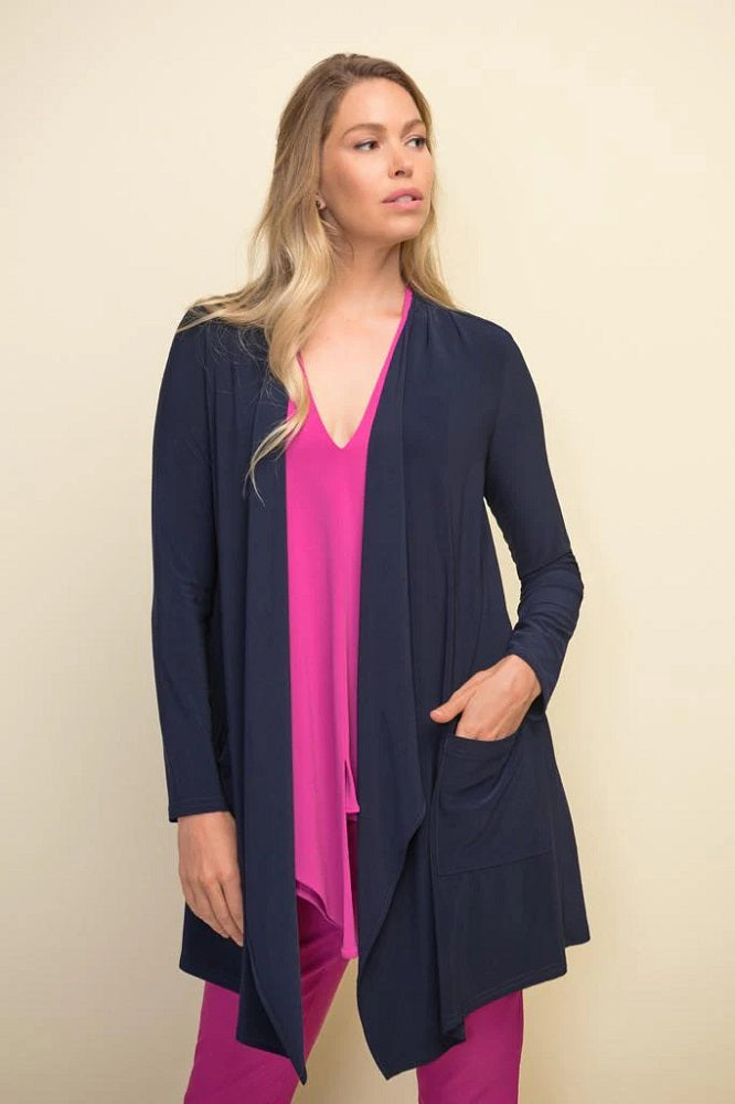 Confeccionado en delicado jersey, es un abrigo que se puede llevar sobre camisetas, camisas, camisetas sin mangas y mucho más. Con sus líneas largas, su construcción drapeada es el tipo de look que puedes usar para pasar el rato en casa o para rematar cualquier conjunto. Los bolsillos en la parte delantera añaden comodidad.