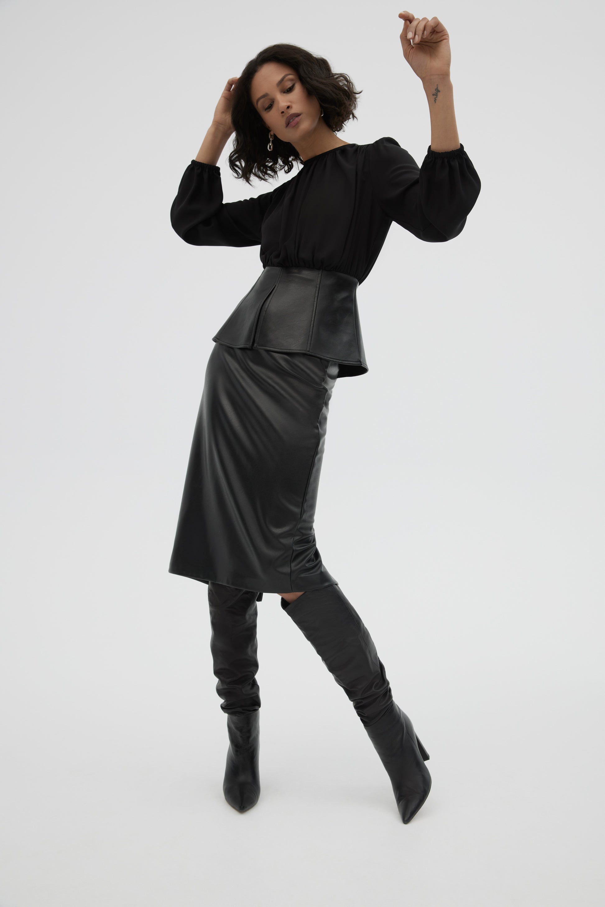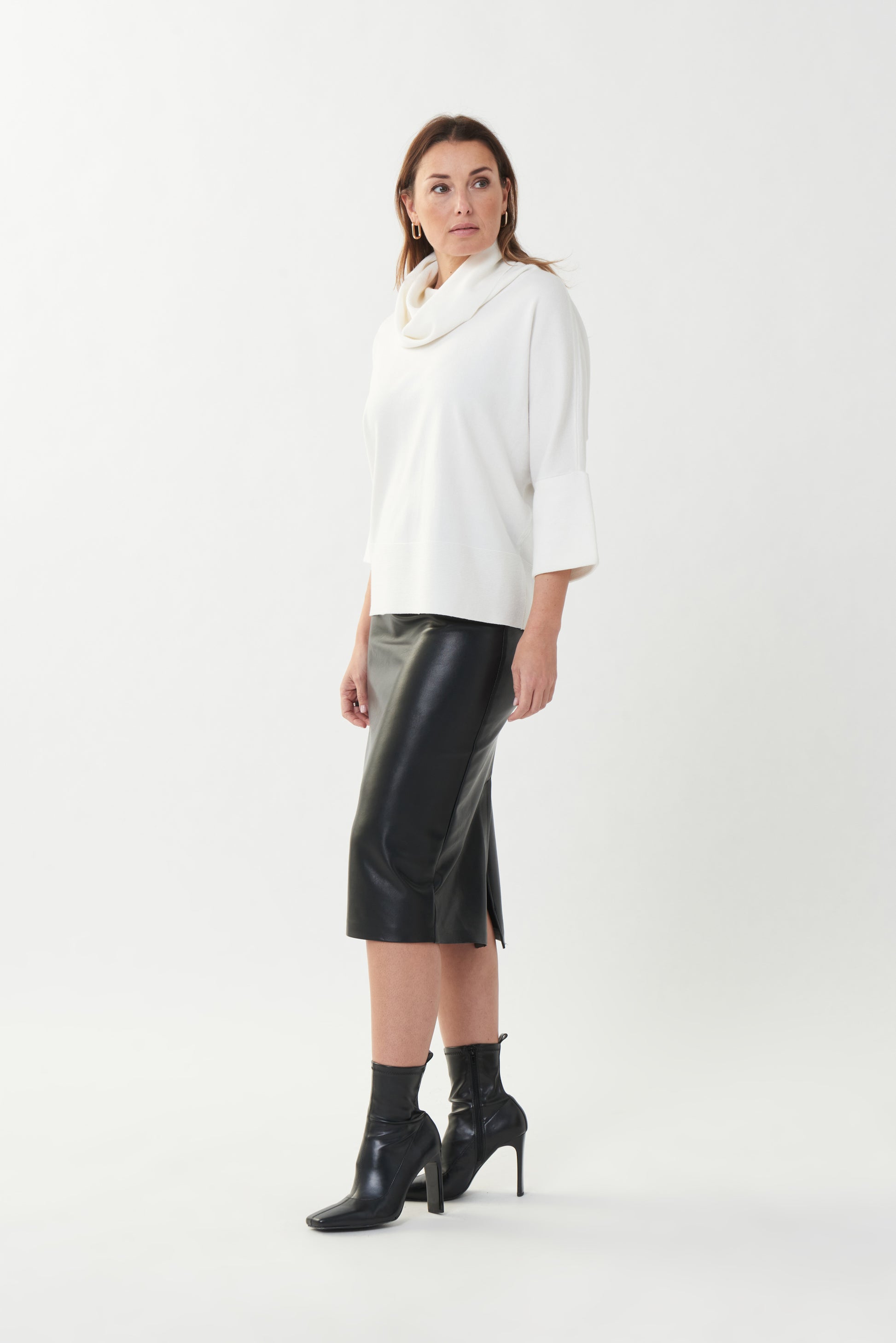 Falda color negro, de ecopiel, tipo lapiz con abertura lateral