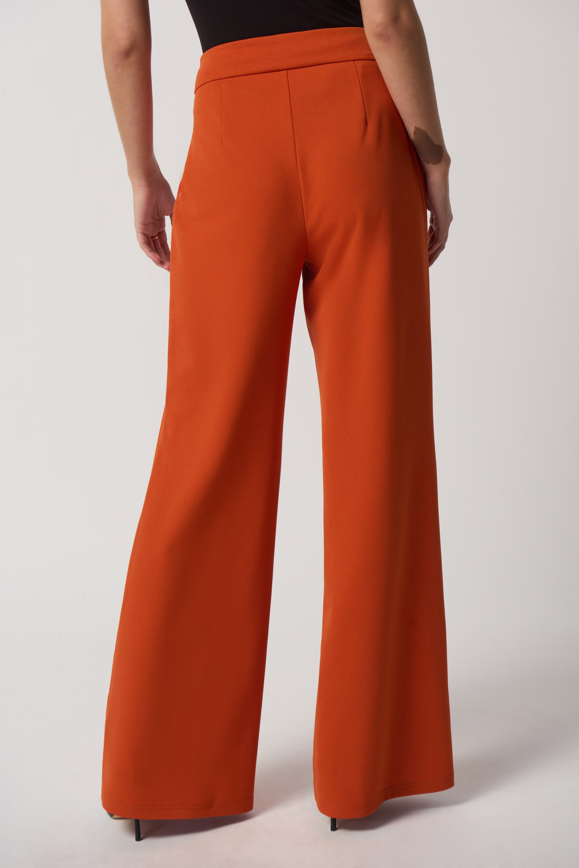 Hay pocos pantalones tan cómodos como estilosos, pero estos pantalones de pierna ancha cumplen esas expectativas. Elaborados en un tejido de crepé scuba suave y ligero, resultan perfectos para el día a día, pero también pueden formar parte de un atuendo más formal. Presentan un cinturón decorativo con hebilla funcional en la cintura y pinzas en la parte trasera para mejorar su ajuste.