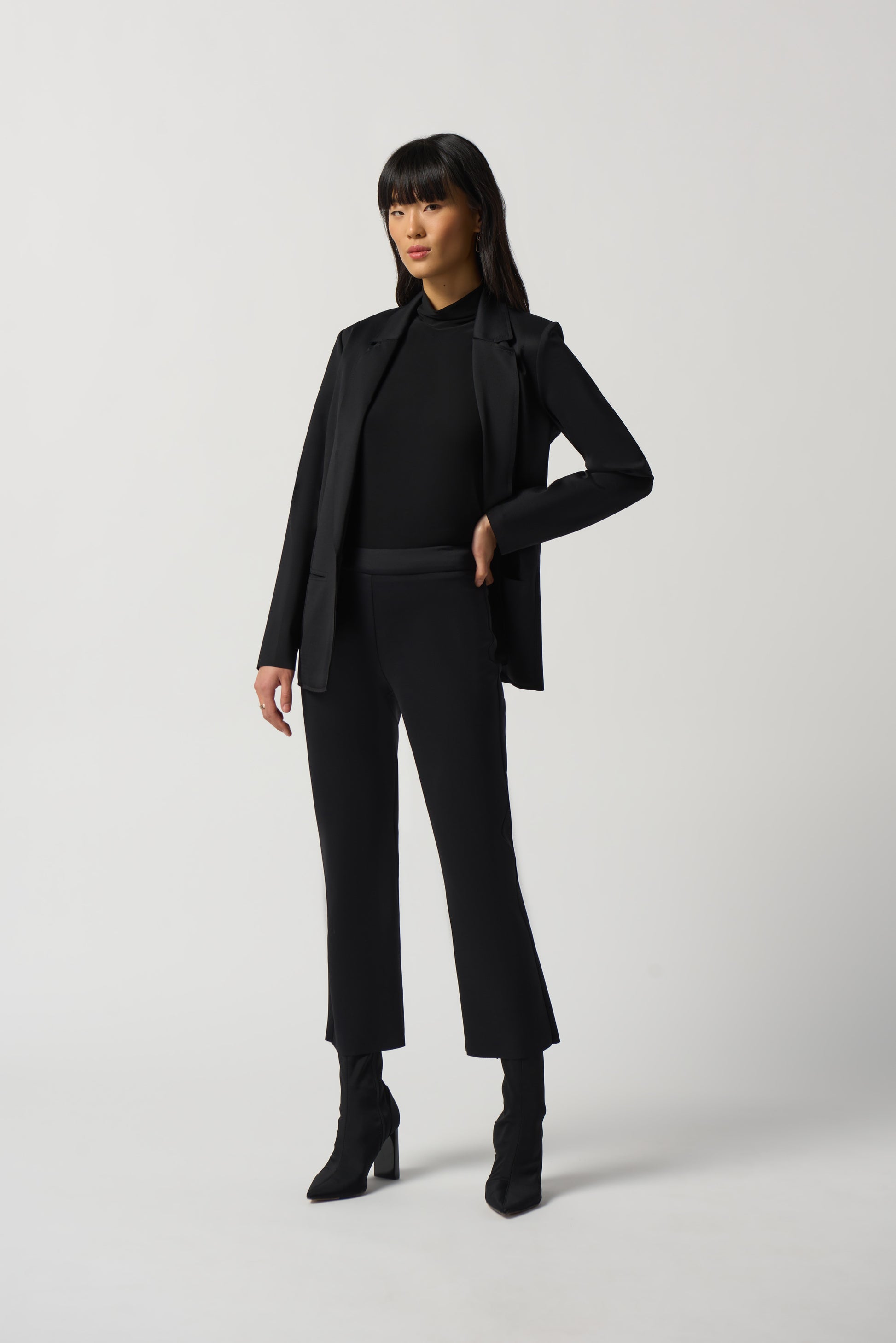 Estos pantalones acampanados de punto scuba son la expresión máxima de la elegancia y la comodidad. Estos pantalones, confeccionados con nuestro exclusivo tejido de punto scuba elástico, están diseñados para favorecer su figura y acompañarla durante todo el día. Su ancha y delicada cintura contorneada ofrece mayor comodidad y sujeción, mientras que la silueta acampanada favorece su silueta.