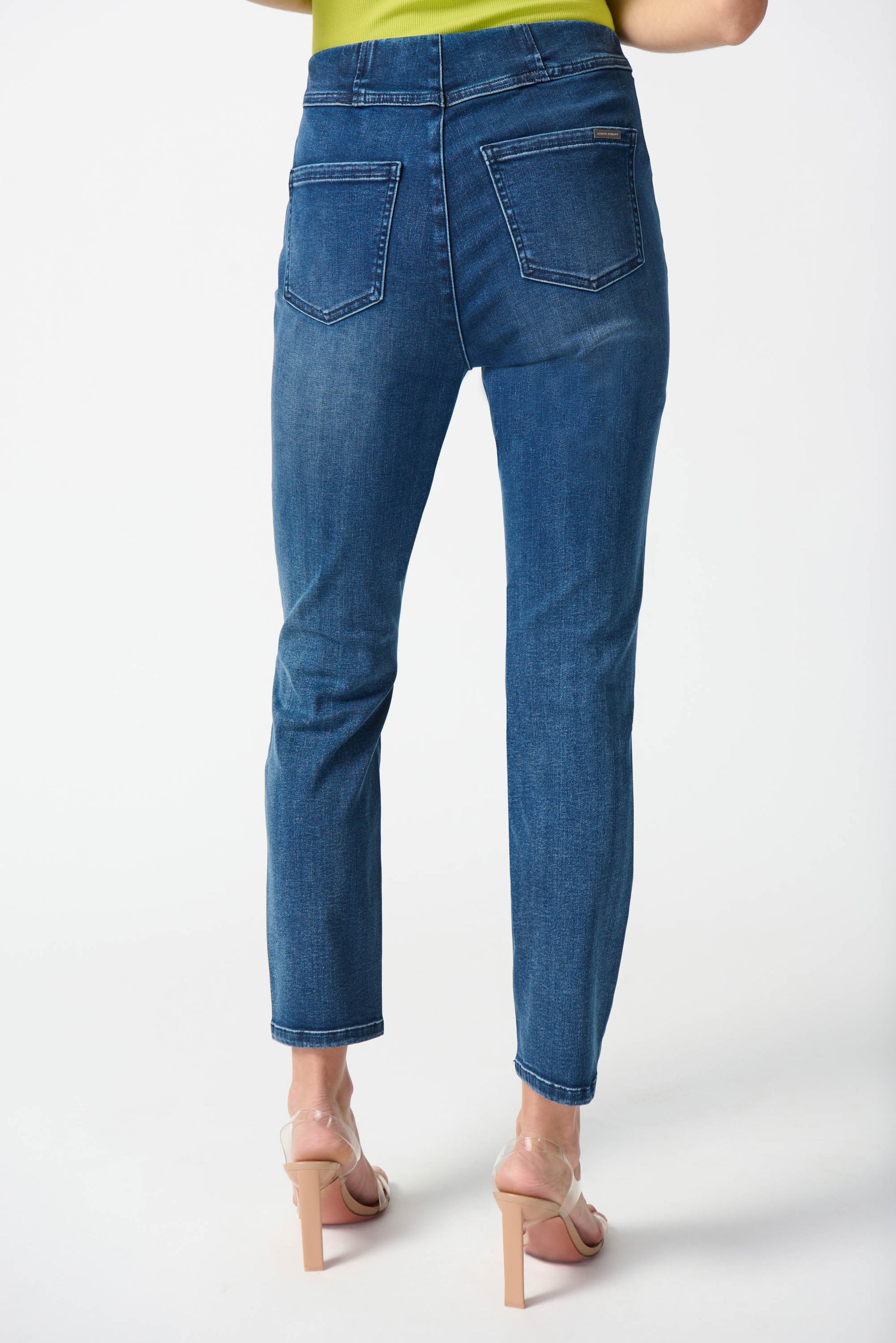 Deléitese con la suave comodidad de un corte ajustado clásico. Estos vaqueros sin cordones en denim son un punto de partida relajado pero elegante para sus looks de diario y se pueden combinar fácilmente. La cintura elástica oculta acentúa el ajuste perfecto de la prenda, mientras que los dos bolsillos traseros ofrecen un práctico escondite para sus artículos básicos.