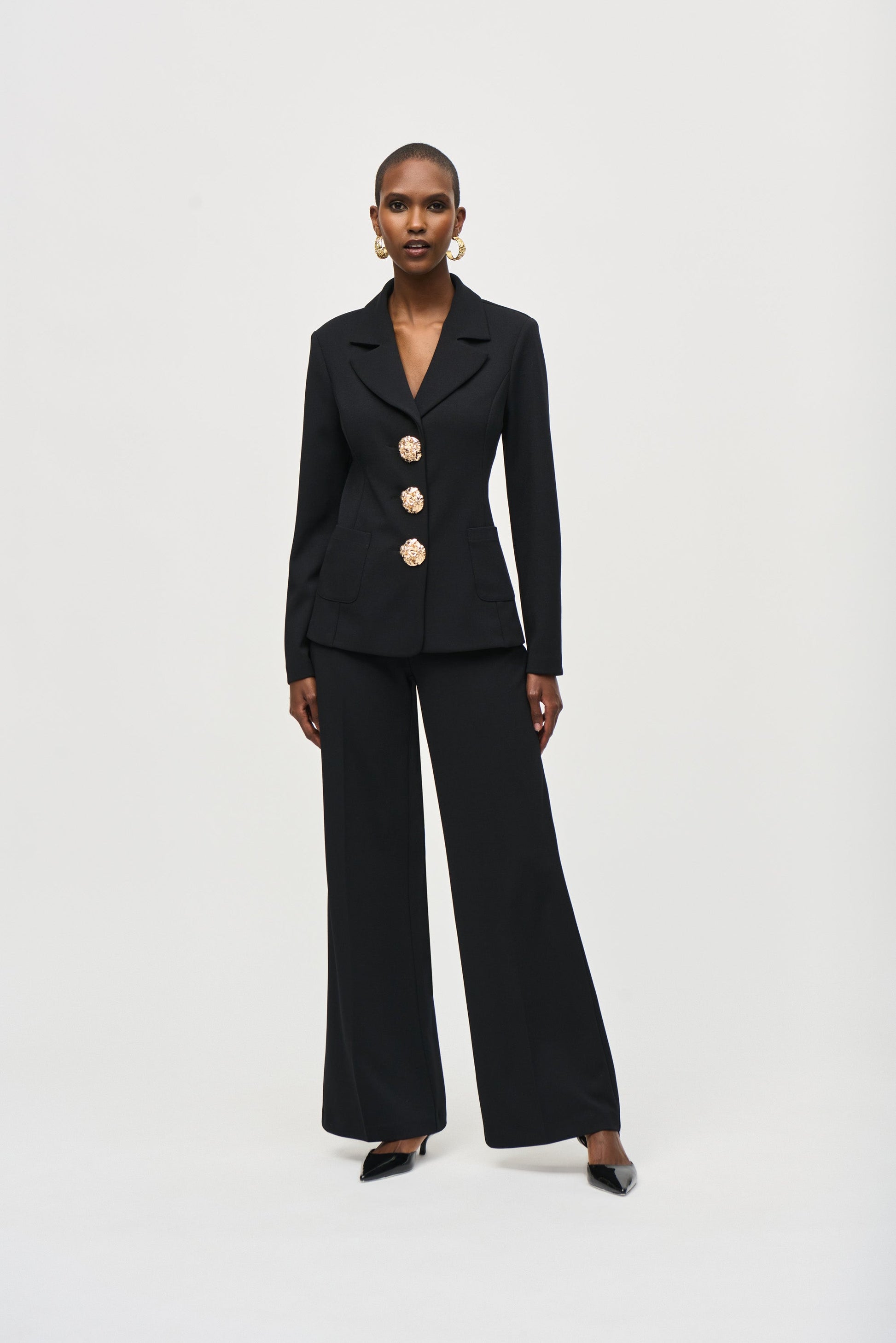 Confeccionados para irradiar un encanto clásico, estos pantalones largos de corte ancho elevan tu estilo con su patrón liso. Realzados con botones de buen gusto, definen el encanto femenino para una presencia inolvidable.