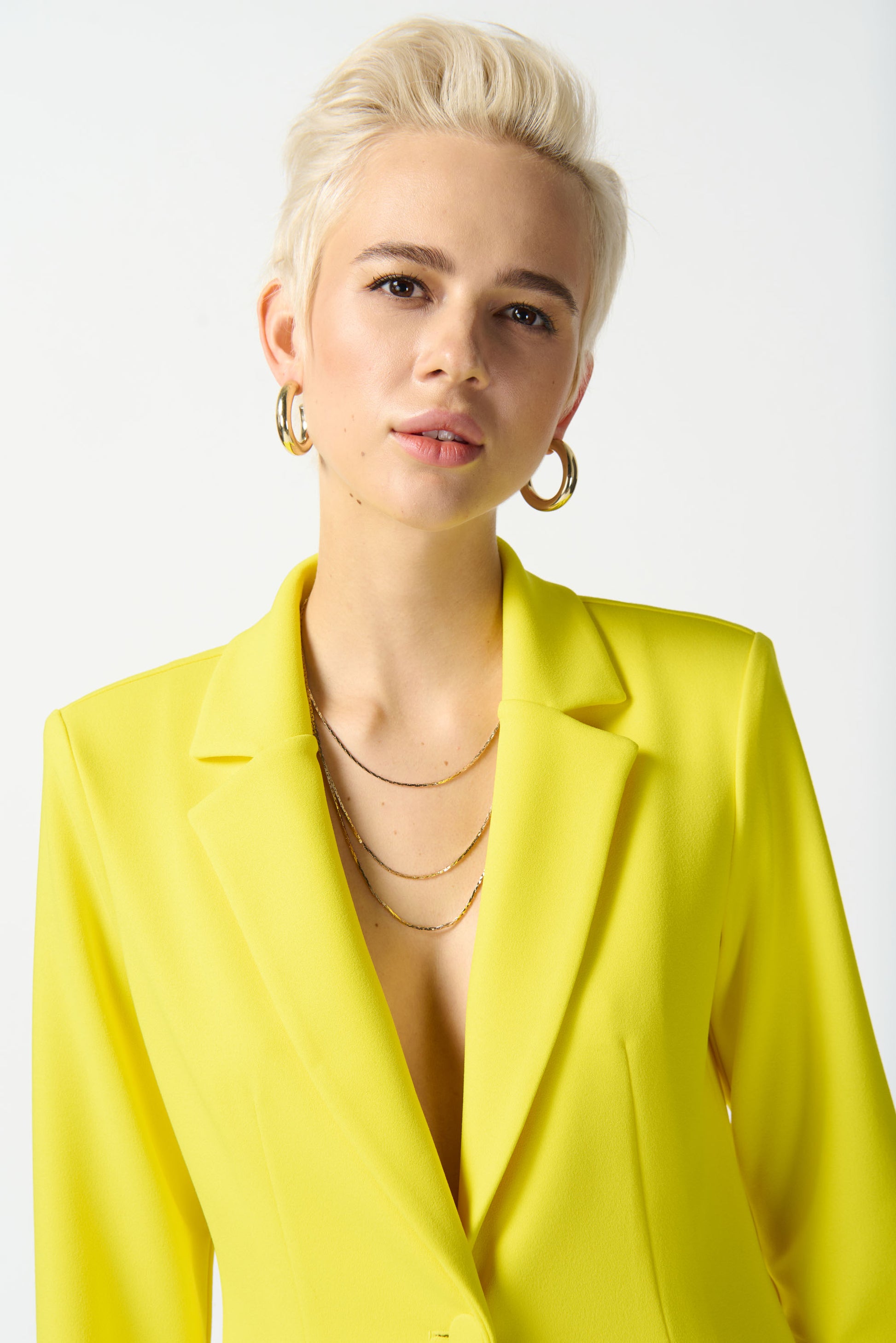 Como reflejo de su impecable gusto y de su aprecio por la moda, este blazer le ofrece un lienzo para crear cualquier estilo que se adapte a su preferencia del momento. Esta pieza tan contemporánea presenta una hermosa confección en un tejido de crepé scuba, mientras que presume de un cuello con muesca que llama la atención y resulta un derroche de equilibrio. El cierre de un botón y las mangas rectas de su corte ajustado son una prueba fehaciente del verdadero estilo atemporal, a la par que garantiza su comodidad durante todo el día sin comprometer su aspecto pulido.