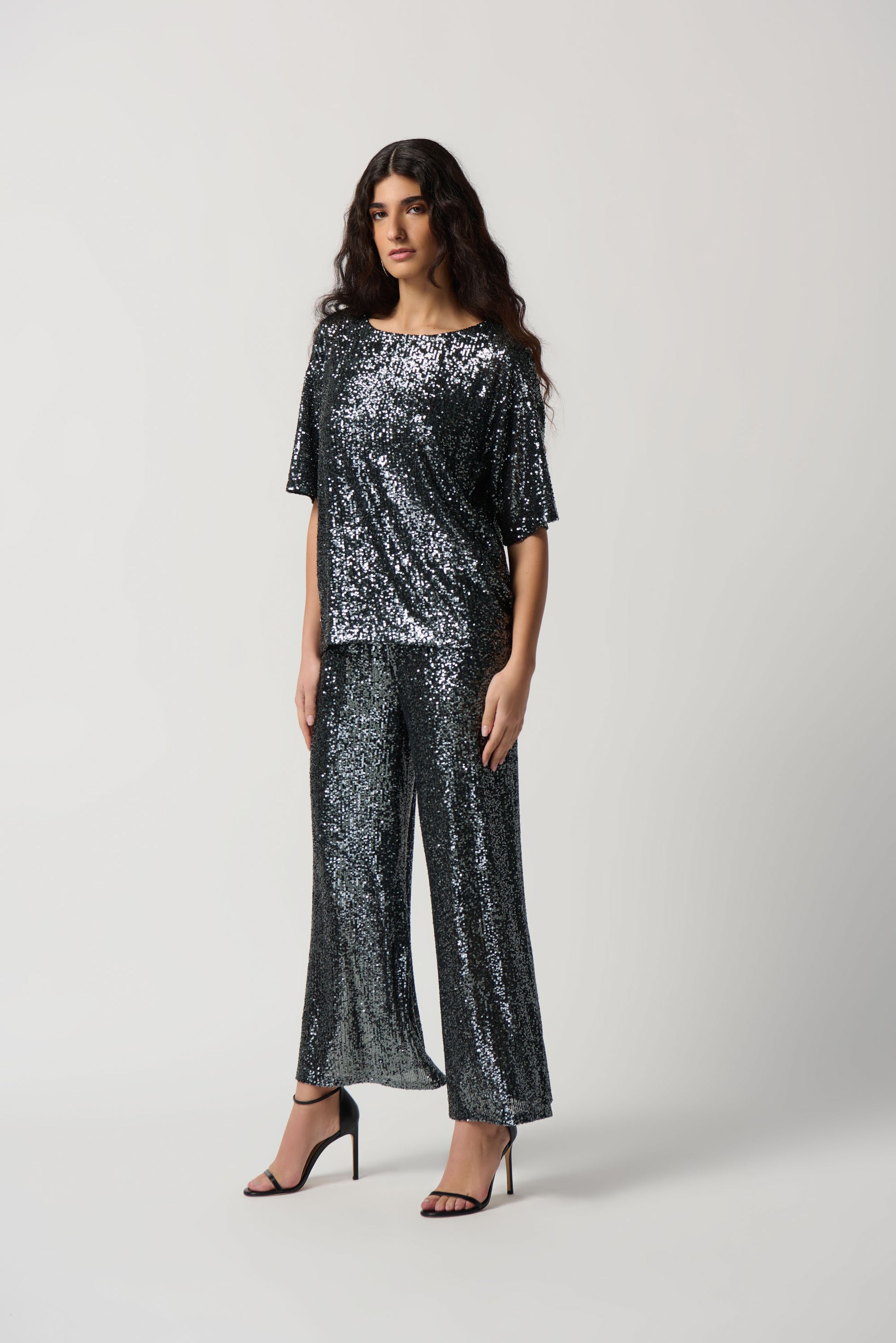 Un acabado de lentejuelas resplandecientes y un gran cuello barco crean un encanto moderno en este elegante top enmarcado por mangas dolmán. Gracias a una cómoda silueta boxy, esta elegante prenda la hará sentirse y lucir bella en ocasiones especiales.