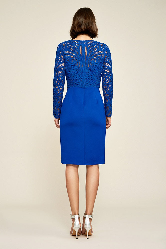Vestido de encaje con superposición de encaje de ganchillo de manga larga con escote en Composición 91%poliester 9% spandex