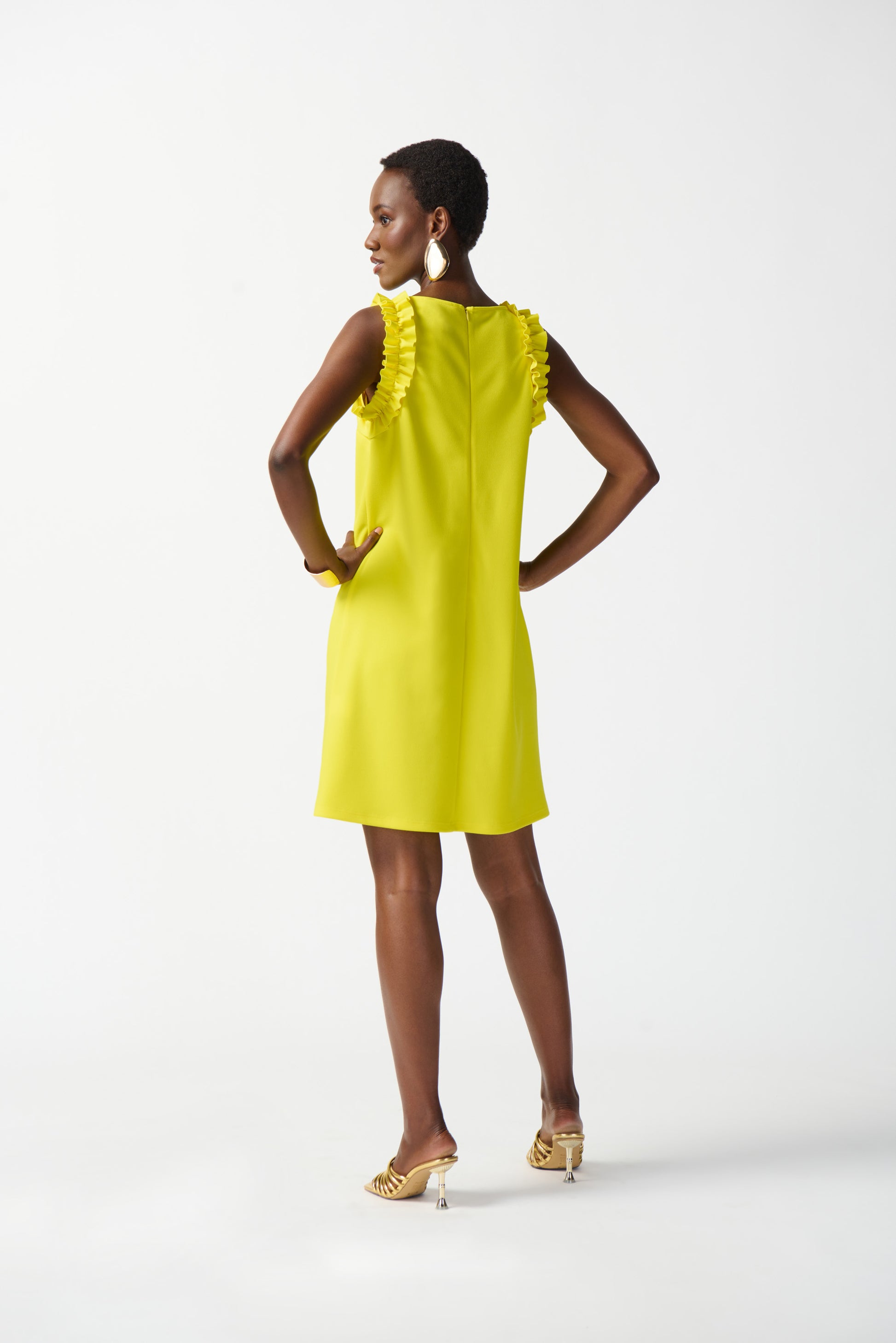 Este vestido de crepé scuba, que llega justo por encima de la rodilla, ofrece un estilo impecable para cualquier ocasión. El corte recto, diseñado pensando en la comodidad y la elegancia, crea una figura muy favorecedora. Del mismo modo, los delicados volantes que adornan las sisas añaden un atractivo encantador a esta pieza tan moderna.