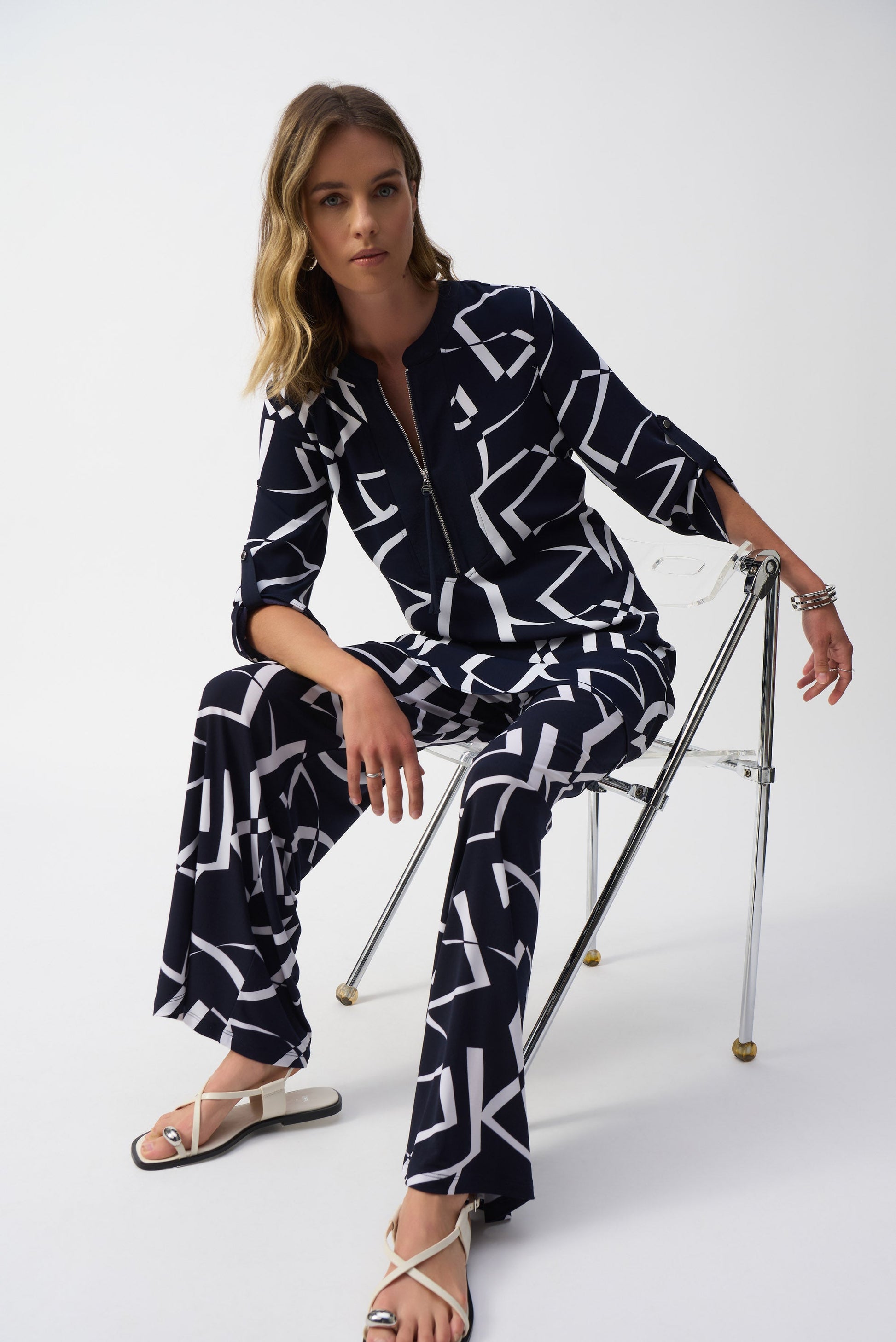 Vestido corte A estampado geométrico con cierre al frente. Composición de la tela 100% Poliéster