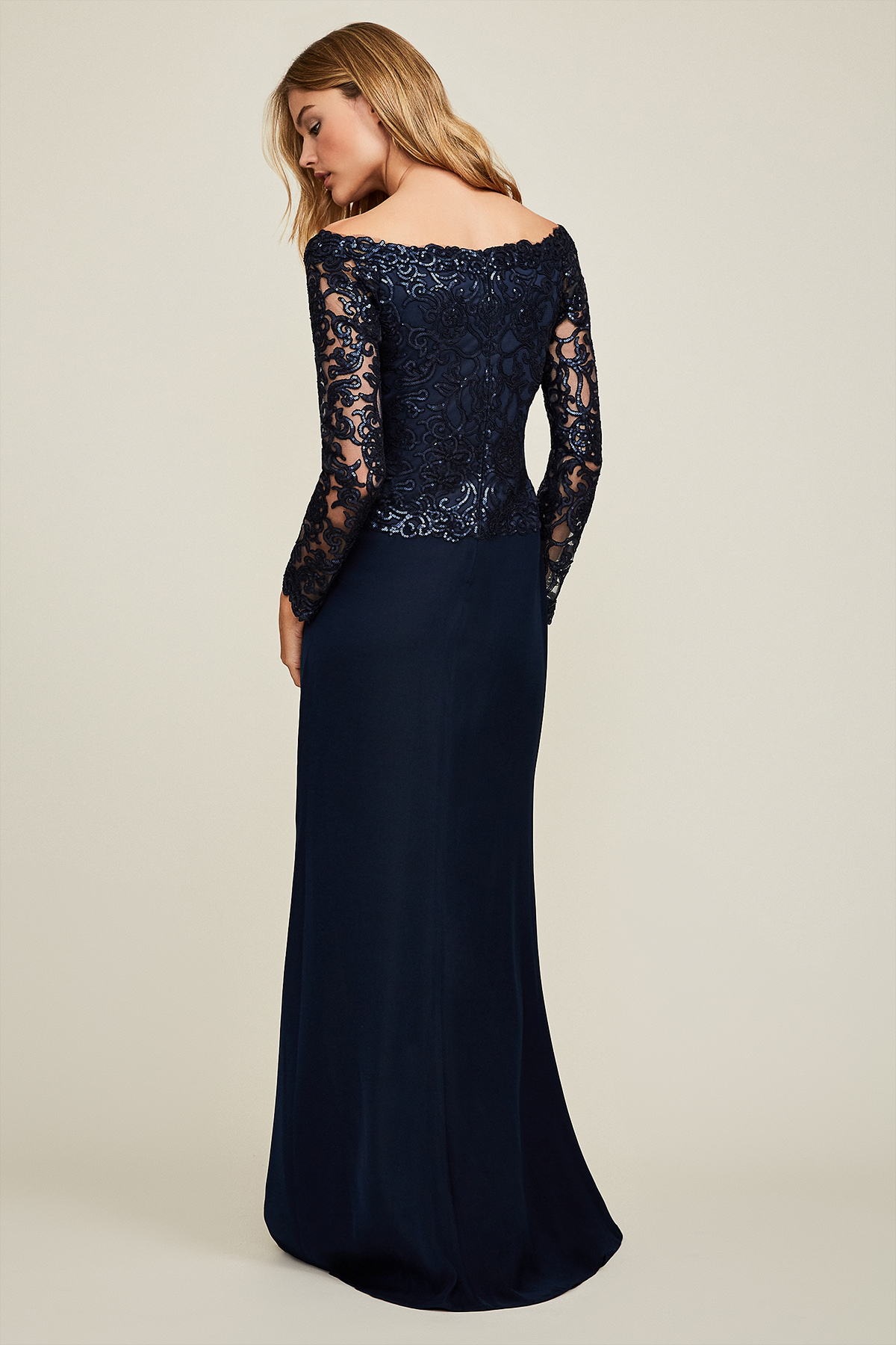 Vestido marino con escote y manga larga bordada de lentejuelas AZZ17810L DIBRA